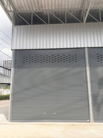 ผลงานการติดตั้งประตูม้วนระบบมือดึง ราเลือกใช้ใบประตูเหล็กกล้าเกรดหนาพิเศษ ทนทานต่อแรงกระแทกและการงัดแงะได้ดีเยี่ยม